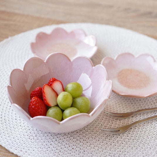中鉢や銘々皿は、春野菜や旬の食材をやさしく引き立て、食卓にさりげない華やかさを添えます。