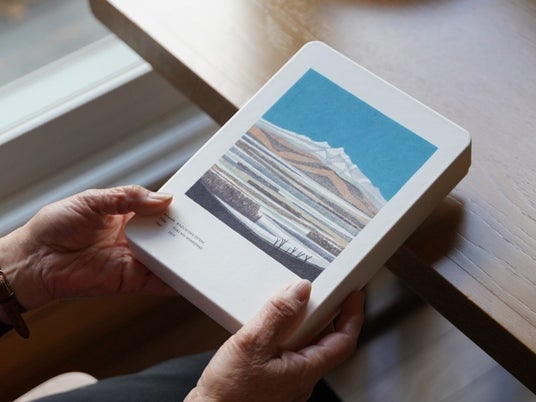 パッケージの前面を飾るのは、大谷一良さんが実在する山をモチーフにした数少ない作品のひとつ「雪の斜里岳」。シルクのような滑らかな質感が特長のシルキーモールドの成形箱を採用し、温かみのある大谷一良さんの版画作品の再現性を高めています。