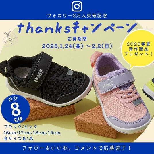 子ども靴のIFME(イフミー)のInstagramフォロワー数3万人突破記念!2025年春夏新作シューズが当たるキャンペーンを開催