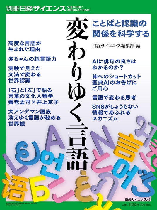 日本経済新聞社グループの出版社「日経サイエンス」は、『変わりゆく言語 ことばと認識の関係を科学する』を2025年7月28日(月)に全国の書店・オンライン書店にて発売しました。