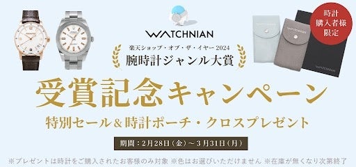 このW受賞を記念してウォッチニアン公式ECサイトでは2025年2月28日(金)より3月31日(月)まで「楽天ショップ・オブ・ザ・イヤー2024受賞記念キャンペーン」を行います。