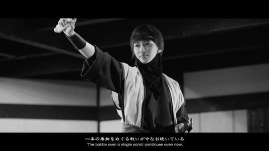 団員が普段行う忍者ショーをベースに、ショー終演後、楽屋に戻った忍者が巻物を開き、指令に従って神楽を習得していく様子が描かれます。実際に佐賀神楽団が活動する地域で撮影し、伝統的な舞とエンターテイメントが融合した、新しくてオリジナリティあふれる映像作品として佐賀神楽の魅力を発信します。さらに、物語のラストでは巻物が再び盗まれ、忍者ショーの冒頭へと繋がるループ構造となっており、動画とショーの相互連携の面白さも見どころのひとつです。