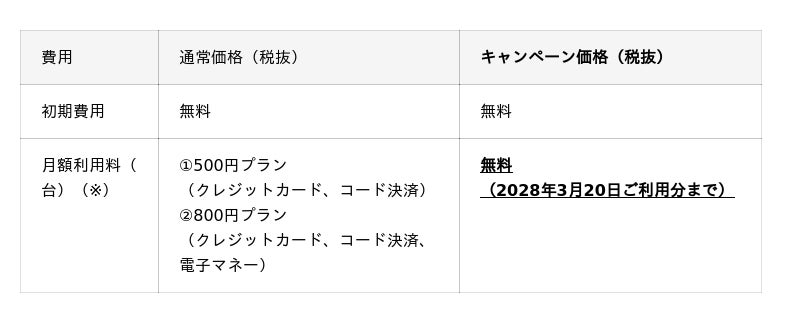 2.「Tap on Mobile」月額利用料が無料(2028年3月20日ご利用分まで)