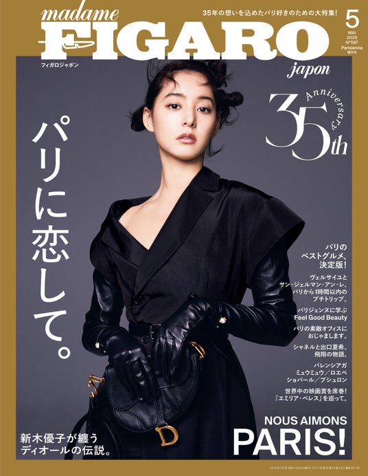 フィガロジャポン35周年を記念する5月号は、2パターンの表紙を展開。パリの風景の「Voyage a Paris」版と、ディオールを纏う新木優子が表紙の「Parisienne」版を用意しました。