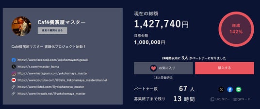 【日本文化継承プロジェクト狼煙 第二弾 目標達成!】71歳Cafe横濱屋マスターのお悩み解決本が『PLANS』にて目標金額を達成しました!
