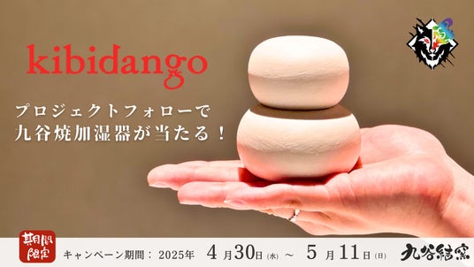 2025年4月30日(木)~5月11日(日)の期間に、kibidangoページにて「九谷焼加湿器(お皿付き)」が抽選で3名様に当たるフォローキャンペーンを開催しています。