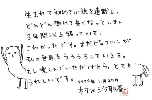 村田沙耶香さん直筆コメント/集英社