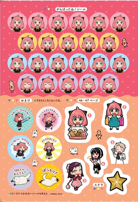 ●人気キャラクターたちのかわいいSPY×FAMILYシールつき。