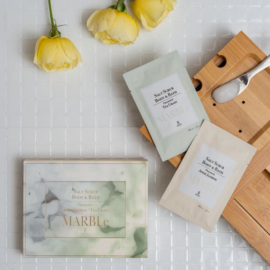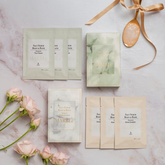 塩のやわらかな使い心地とSWATi MARBLeの香りで、ボディケアタイムを特別に。
