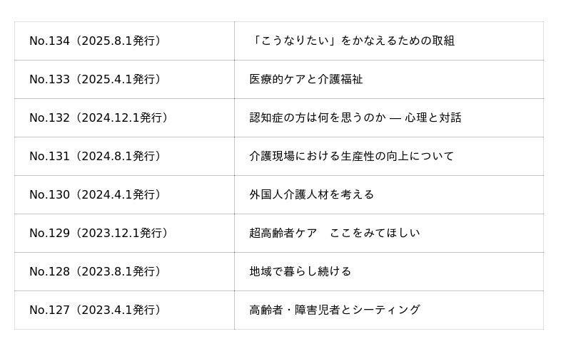 12月1日発行!介護を深掘りするマガジン『カイゴのチカラ』NO.135「特集 介護現場で活用可能な評価ツールの知識と活用」のご案内とバックナンバーのご案内