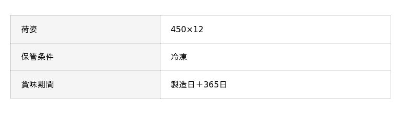 450gの使い切りやすい形態と冷凍365日の賞味期間から、外食・給食・ホテルなどの業務用としてご利用いただくほか、自社公式通販サイトでの販売や海外への輸出など幅広く販路を広げています。