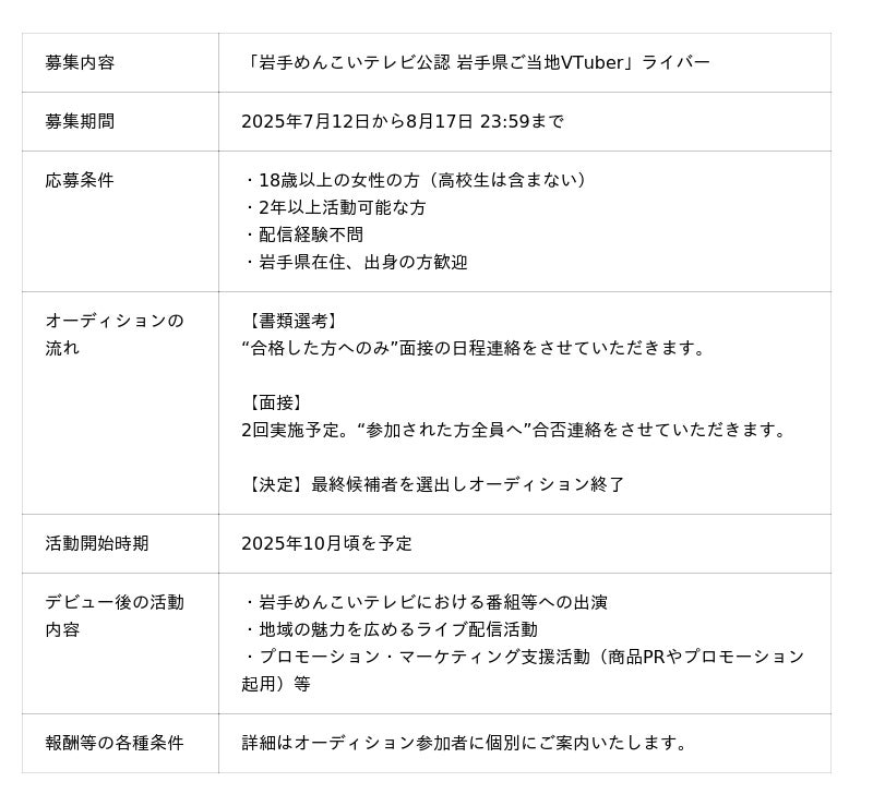 岩手めんこいテレビ公認 岩手県ご当地VTuberオーディション 応募ページ