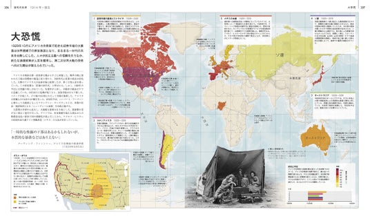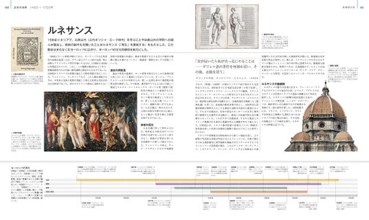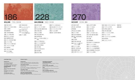 - 人類誕生から現在までの世界の歴史や、世界史上重要な162のテーマを、精細なヴィジュアル表現で解説した決定版的図鑑