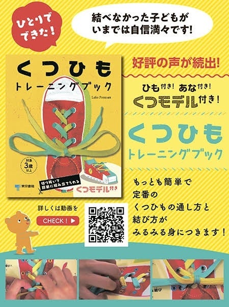 東京書籍株式会社から2017年7月に発売されました書籍『くつひもトレーニングブック』。この度(2025年3月末)根強い人気で重版となりました。