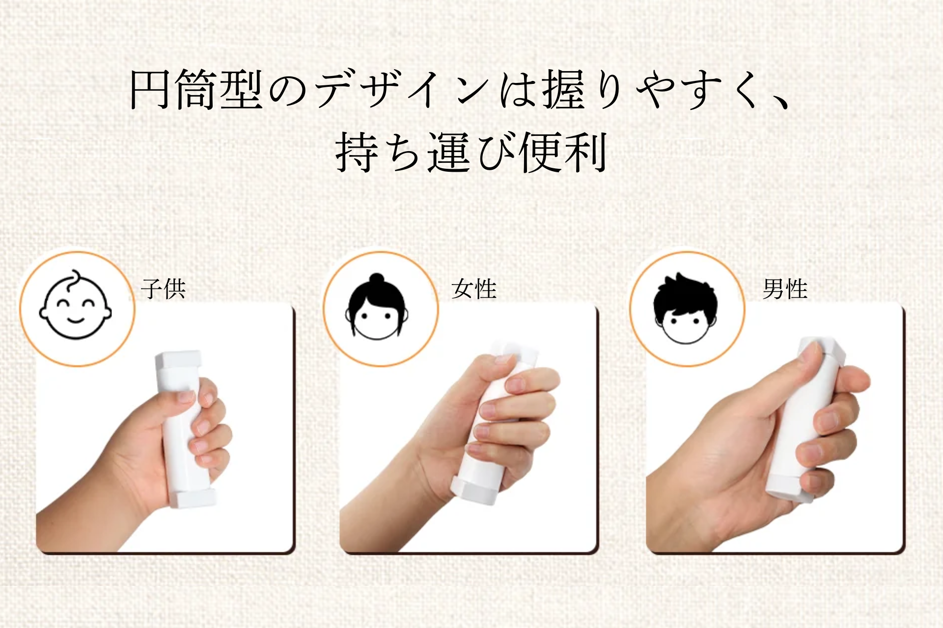 Point5 わずか119gの軽量設計本製品はわずか119gの軽量設計で、ポケットやバッグにすっきり収まり、持ち運びも快適です。小さな子どもや女性でも片手で握りやすく、いつでも心地よい温もりを実感できます。