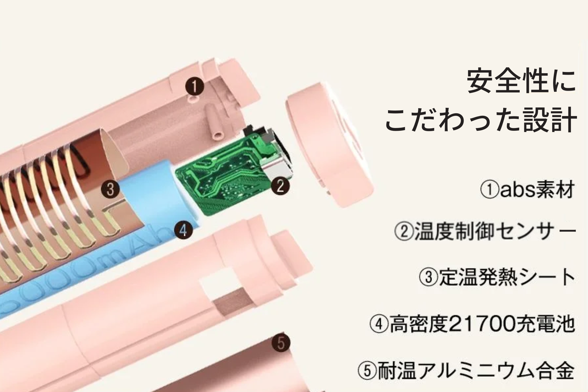 耐久性の高いABS樹脂とアルミニウム合金を採用し、内部には温度制御センサーと恒温発熱シートを搭載。常に適切な温度で加熱をコントロールします。さらに、過熱・過充電防止機能を備えており、安心してご使用いただけます。