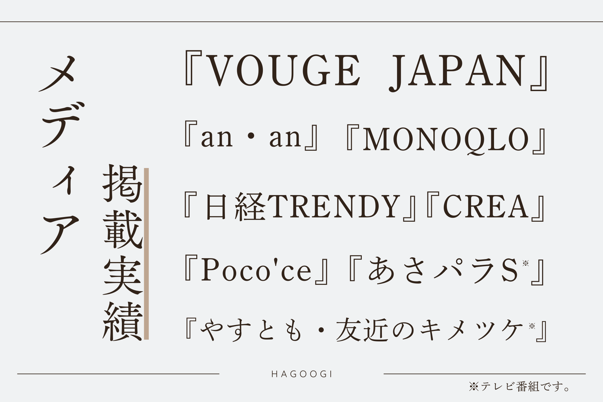 翌年には、お客様の声を反映して新たなカラーバリエーションを追加。ファッション性の高いデザインが多くの方に支持され、世界的に著名なファッション誌『VOGUE』、そして『日経』『anan』などの雑誌にも掲載されました。これにより、ブランドとしての信頼性と認知度をさらに高めることができました。