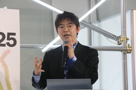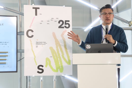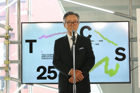TCS 2025開催に際し、「6年前、Tokyo Creative Salonは、東京をクリエイティブシティにしていくことを目標にスタートしました。日本には伝統・文化など世界に誇れる素晴らしい魅力があり、東京からそれらを発信していきたいと思っています。そのためにはいろんな人々が一緒になって、ひとつひとつ解決していく必要がある。また、こういうイベントは楽しくなければ意味がないので、楽しんでいただきながらみなさんと共に広めていきたい」と意気込みを述べ、東京都をはじめとする関係各所への感謝を述べました。