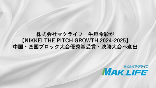 日本経済新聞社が主催する全国のスタートアップ・アトツギベンチャーを対象にしたピッチコンテストの全国大会【NIKKEI THE PITCH GROWTH 2024-2025】中国・四国ブロック大会におきまして、株式会社マクライフ(本社:岡山県津山市/代表取締役 牛垣和弘)の牛垣希彩が、優秀賞を受賞いたしました。
