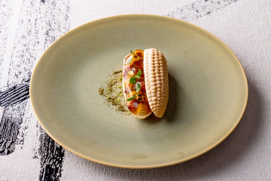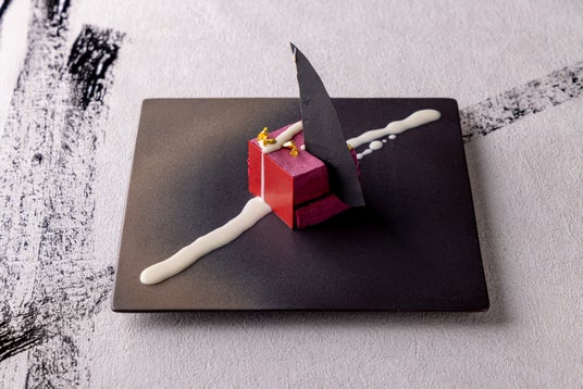 愛知県産鰻と玉蜀黍 フォアグラのムース最中 飛騨山椒とライム黒胡椒の香り