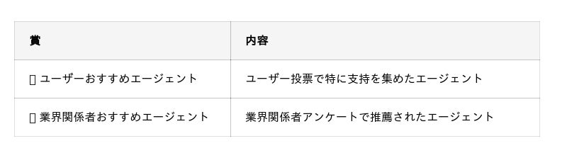 「ユーザーおすすめエージェント」(特別賞)