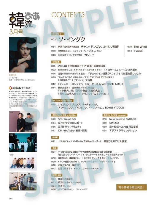 さらに、映画『満ち足りた家族』のチャン・ドンゴンとホ・ジノ監督をはじめ、ドラマ『勇敢無双ヨン・スジョン』が話題のソ・ジュニョン、韓国BLドラマ『冬すぎて桜』のカン・ヒのインタビューや、BOYNEXTDOOR、チ・チャンウク、JX(ジェジュン×ジュンス)、アン・ヒョソプ、イ・ジェフン、イ・ソンギョンのイベントレポートなど、充実した内容でお届けします。