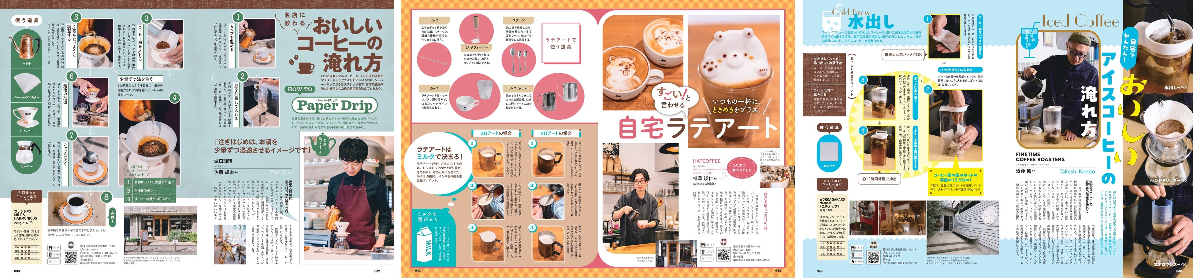 名店の情報や基本の知識をインプットしたら、今度は自宅でおいしいコーヒーを。いくつもの手法をそれぞれの名店に教わりました。日常のコーヒーをさらにおいしく。来客をもてなすテクニックもあります。名店に教わるおいしいコーヒーの淹れ方