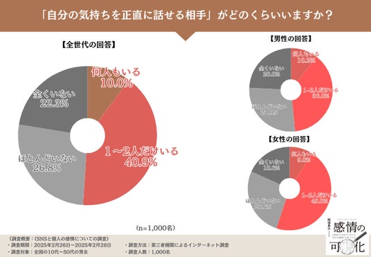そこで、『「自分の気持ちを正直に話せる相手」がどのくらいいますか?』と聞いてみました。