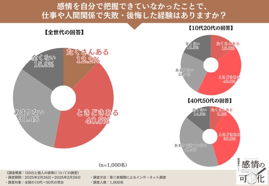 自身の感情を把握できずに失敗や後悔がある人は半数以上!若年層はさらに多い傾向に!
