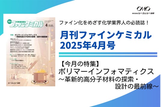 株式会社シーエムシー出版(本社:東京都千代田区神田錦町1-17-1、代表取締役:金森洋平)は、 雑誌『月刊ファインケミカル2025年4月号』(定価:税込7,700円)を、2025年4月15日に発売いたします。 本誌は当社ECサイトおよび全国の書店にてご購入いただけます。