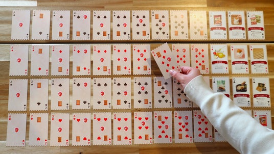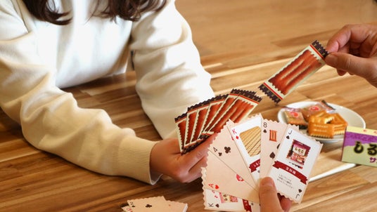 「しるこサンドトランプ」の特徴今回の景品である「しるこサンドトランプ」は、しるこサンドをモチーフにしたオリジナルデザインとなっており、1~10のカードには、小さなしるこサンドや赤いお椀が散りばめられており、並べたときのデザインも楽しめる仕様に仕上げました。