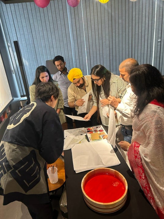 【米沢の文化をインドへ】インドの首都デリーにおいて、米沢市の文化や産業を体感いただく紅花染体験&日本酒試飲イベントを開催!