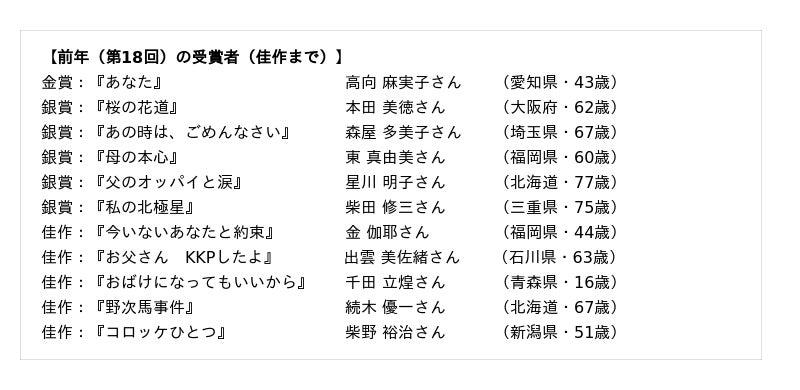 第19回 今は亡き大切な人への想いを手紙で綴るコンテスト