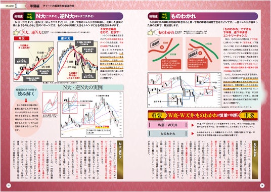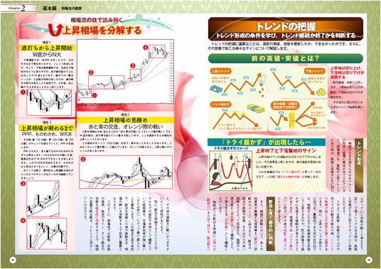 ローソク足チャートと移動平均線、そして相場流のチャート解析術の基礎を伝授。最初は難しそうですが、説明されてみると意外にカンタンなトレンドのとらえ方がわかります。8つの相場流のワザを使えば、いままでやってきた投資法にも応用でき、短期トレードへの道も開けます。