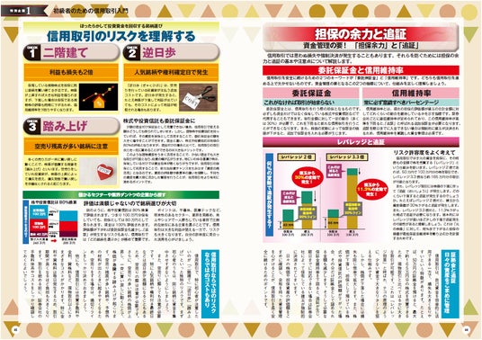 特別企画として「初級者のための信用取引入門」を用意しました。知らないと怖い感じですが、知ってしまうとそこまで怖くなく、また、売りでも買いでも勝負できるので投資機会が2倍に増えます。信用取引を行う際の注意点なども解説し、初級者でも徐々に始められる構成としました。