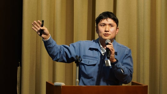 最終審査会でプレゼンテーションを行う戸松 裕登(株式会社丸菱製作所)