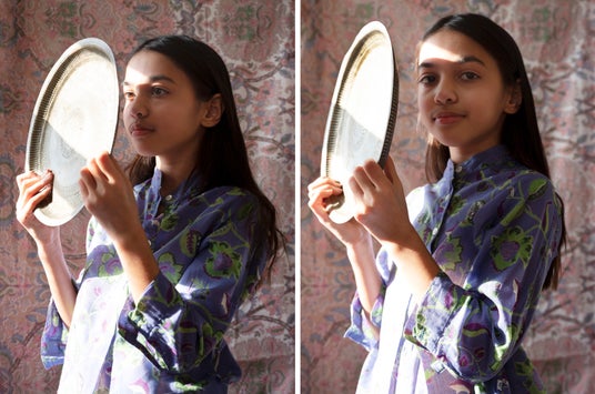 プライヤ・スレシュ・カンブリの作品はとても私的であり、移住者としての体験という文脈に根ざしています。アルカジ財団が展示したインド特有の手塗りのスタジオ人物写真に着想を得て、自身の家族写真のアーカイブを題材にしてアイデンティティ、想い出、帰属感というテーマの探求を始めました。プライヤは20年にわたる創作活動を通じて、家族の肖像写真と先祖伝来の遺産を見直し、再創造し、新たな文脈に当てはめることで、祖先のルーツおよび彼女が帰化した国の両方と自身を結びつけるアーカイブを構築しています。彼女は作品を通じて不在と喪失について熟考し、家族の変遷の歴史をたどって、思慮に富んだ冷静なナラティブで家族の人生を記録しています。