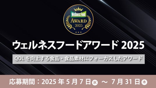 食(ウェルネスフード)を基点に、ウェルネス産業の健全な市場形成と成長を推進することで、国民の健康寿命延伸をはかることを目的として活動する、一般社団法人ウェルネスフード推進協会(事務局:東京都中央区、代表理事:矢澤一良、以下 当協会)は、2025年11月26日(水)より東京ビッグサイトで開催される「ウェルネスフードジャパン」内で開催される、『第8回ウェルネスフードアワード2025』の応募を本日より開始いたしました。