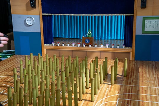 今回生徒役として登場したのは「シガール オゥ マッチャ」たちです。これまで写真撮影には挑戦したことがありましたが、動画での撮影は初挑戦。控室の前で緊張した様子の「シガール オゥ マッチャ」を発見しました。撮影を前に心境を聞いてみると、「しっかりと生徒役を演じきれるように頑張ります!」と意気込みを話してくれました。