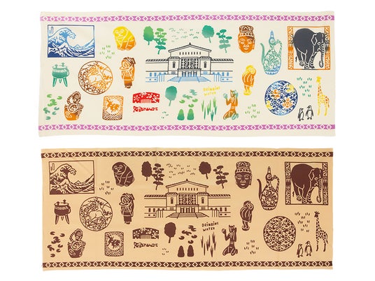 伝統技法「注染(ちゅうせん)」を用いた大阪・堺発祥の手ぬぐいブランド「にじゆら」とコラボレーションした、大阪市立美術館オリジナル手ぬぐいです。