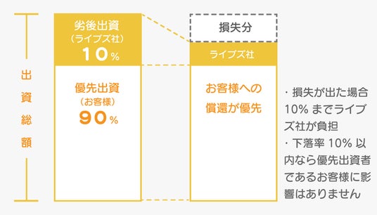 劣後出資分(ライブズ社出資分)までの損失はライブズ社が負担します。