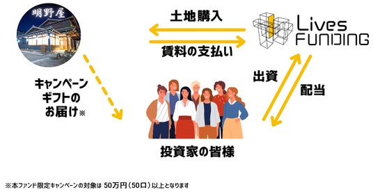 ・キャンペーン期間中に投資家登録を行い、「Lives-FUNDING#29」に50万円以上出資された方が対象です。