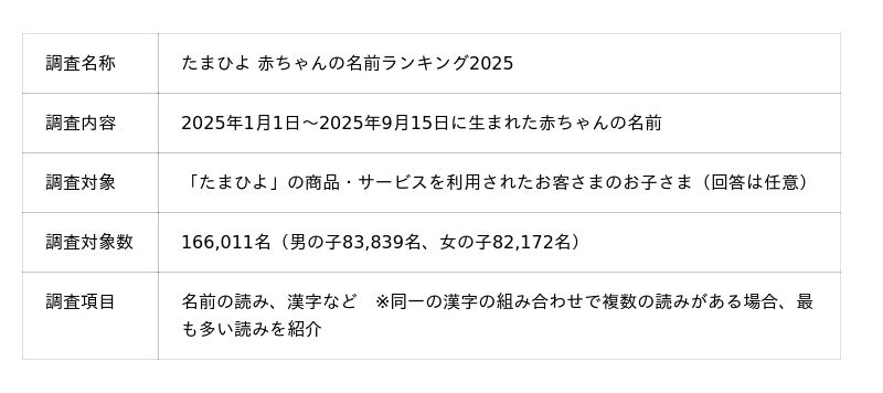 株式会社ベネッセコーポレーション(本社:岡山県岡山市、代表取締役会長兼社長:岩瀬大輔)が発行する、妊娠・出産・育児雑誌『たまごクラブ』『ひよこクラブ』は、今年も2025年1月1日~2025年9月15日に生まれたお子さま約16.6万人のお名前を調査・集計したランキングを発表いたします。名前ランキングとしての集計数は国内最多となります(※2025年10月自社調べ)