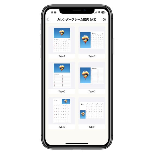 4. お好みのフォーマットを選択A3カレンダーはTypeA~Fまでの6種類。