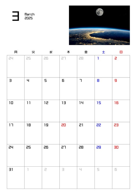 ・週の始まり(月曜始まり・日曜始まり)の切り替え可能