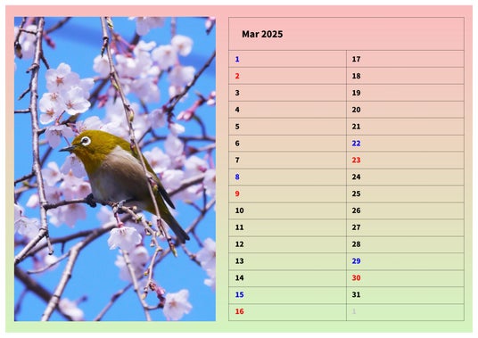アプリ「写っぷりん」のベーシックカレンダーでA3普通紙のカレンダーがつくれるようになりました。