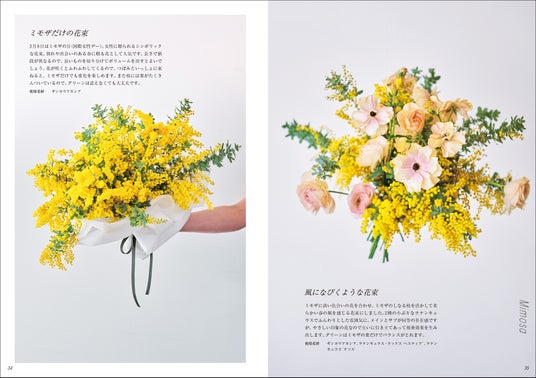 巻末には、花束の基本的な作り方とラッピングの仕方も解説。花の特徴を見極めながら読み進めることで、花束作りに自信がもてる一冊です。