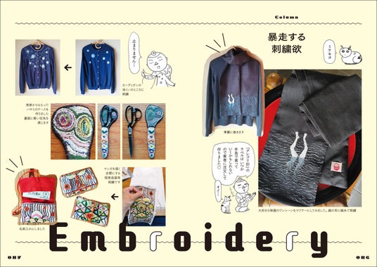 本書は、手芸web「ミグラテール」での連載記事をまとめたものに、描きおろし作品と、さらに記事にかかわるコラムなども盛りだくさんプラスしたもので、著者自らが作った、ご自慢の作品もカラーページで紹介!