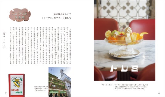 パフェ、ゼリー、プリン、トースト、ホットケーキ、飲み物など、あまいものを切り口に、大阪府内に存在する名喫茶を紹介しています。