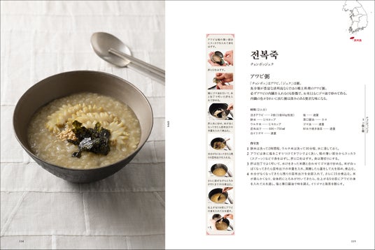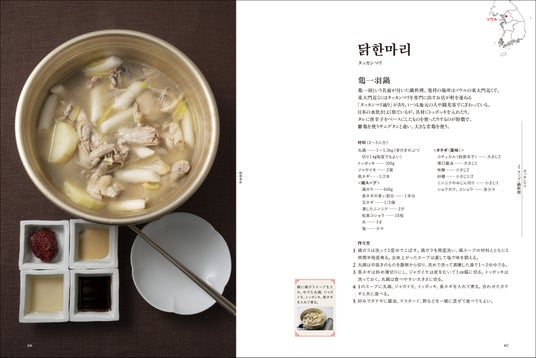 わかりやすく、肉、魚のメイン料理、スープ、チゲの鍋物など料理別に章をまとめ、四季折々の食材を使って韓国の一年の味を載せています。